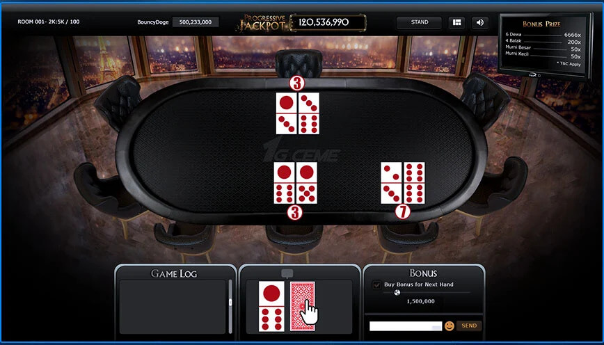 Pemainlah yang memenangkan permainan karena kartu bandar adalah Flush Hati sedangkan kartu pemain adalah Flush Waru.